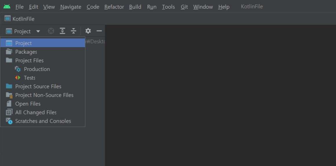 즉 본인은 현재 폴더가 Android Project 폴더라고 생각했을지 몰라도 사실 우리가 컴퓨터에서 마우스 우클릭으로 생성하여 만드는 일반적인 폴더이기 때문에 Android 버튼이 활성화되지 않는 것이다.