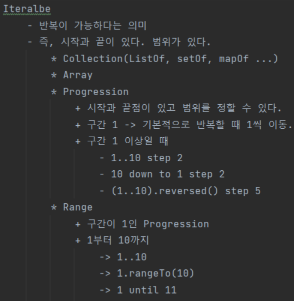 val range3 = 'A'..'Z' //-> 코틀린은 영어와 한글의 순서를 알고있다.