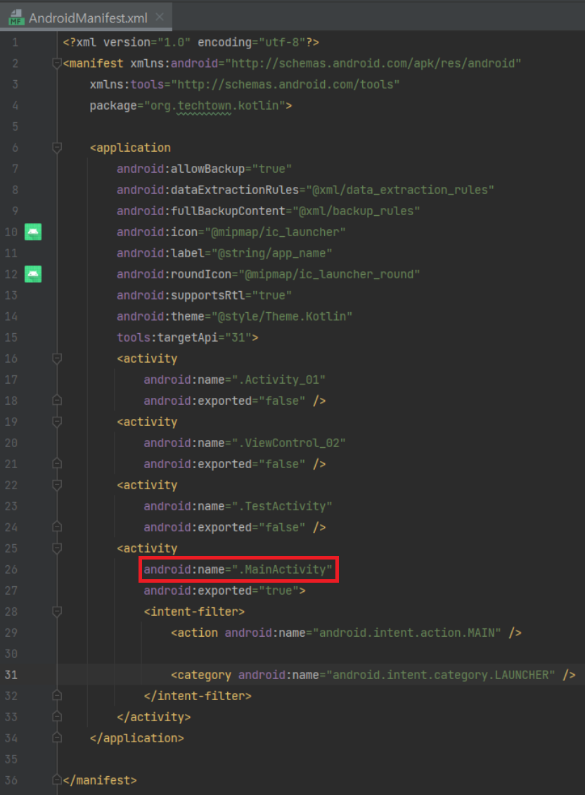 MainActivity를 실행시키기 위해 다음과 같이 Manifest.xml의 launcher activity란에 설정해주고 Run해주었다.