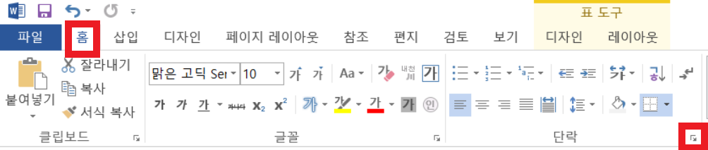 그 다음 홈 탭의 단락 부분으로 가자.