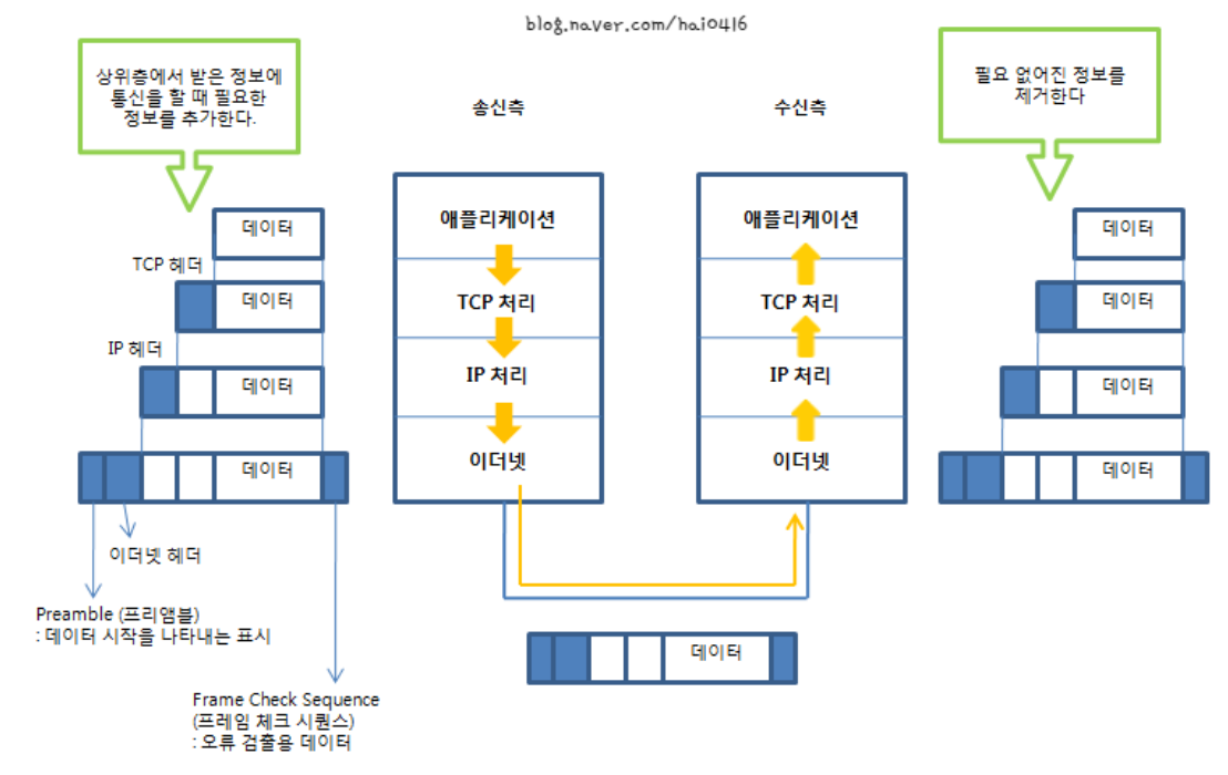 - 점점 더 하위층으로 내려갈 수록 패킷 전체 크기는 커진다