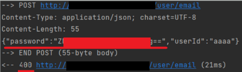 → 암호화를 적용시킨 후 회원가입 기능을 이용하니 다음과 같은 로그를 okHttp를 통해 얻을 수 있었다.