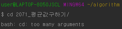 만약, 위 사진과 같이 cd 2071_평균값구하기/ 로 명령을 내렸는데, 다음과 같이 에러가 난다면